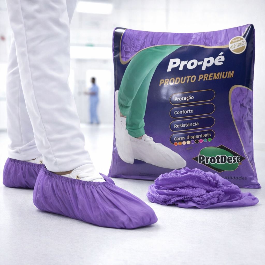 Sapatilha Pro-Pé TNT, lilás, tipo soldado, fabricada em 100% polipropileno, gramatura 20, atóxico. Embalagem c/ 100 unidades. UTILIZADO Hospital, clínica, estética, tattoo, SPA, indústria alimentícia, cozinha industrial, etc. ESPECIFICAÇÕES Confeccionado em TNT - Tecido Não Tecido 100% polipropileno. Material Descartável. Atóxico. Cor: Lilás. Gramatura: 20gr. Embalagem: 100 unid. Tamanho: Único (baseado na numeração até 42). DICAS Recomendamos não usar com sandalhas ou chinelos, somente com sapatos ou sapatilhas. Conservar em local arejado em temperatura ambiente. NÃO PODE SER VENDIDO SEPARADAMENTE. DISPONIBILIDADE Imediata. Produto com Registro ANVISA.